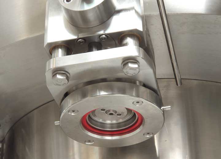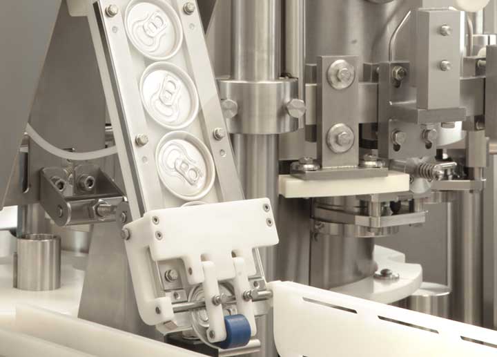 Der automatische Rotationsprozess spült die Dose mit CO2 kurz vor der Druckbefüllung und unmittelbar vor der Entladung des Deckels.